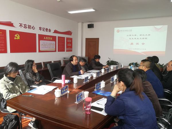 交流的第二站是山西大学马克思主义学院。昝剑森副院长率领原理教研室同仁参加了座谈会,介绍了山西大学悠久的办学历史(早在1926年就有马克思主义研究和传播)、近几十年马院的发展历程。李伟主任具体介绍了原理课教改情况,他们较早地开展专题教学改革,并得到其他高校专家的肯定,学生课程作业形式多样化,如画册、小雕塑、微型视频、文艺小节目等都可以,这充分调动了学生的积极性。我们介绍了队伍建设、教学改革、科研工作等方面的情况,也非常欢迎他们日后来我院做进一步的交流。