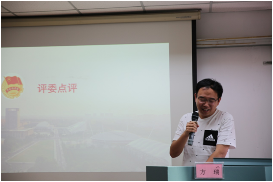 选手们展示结束后,评委老师们进行了点评。张立程老师针对同学们现场展示的微团课存在的问题提出了改进和完善的建议。张老师希望同学们在内容衔接上更加自然,在内容细节上更加准确。另外,张老师提醒同学们要注意上一堂微团课的措辞。