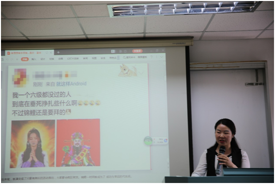 尹江燕用“锦鲤”这一网络热门语贯穿整个微团课,认为要成为新时代的锦鲤必须有理想有本领有担当。
