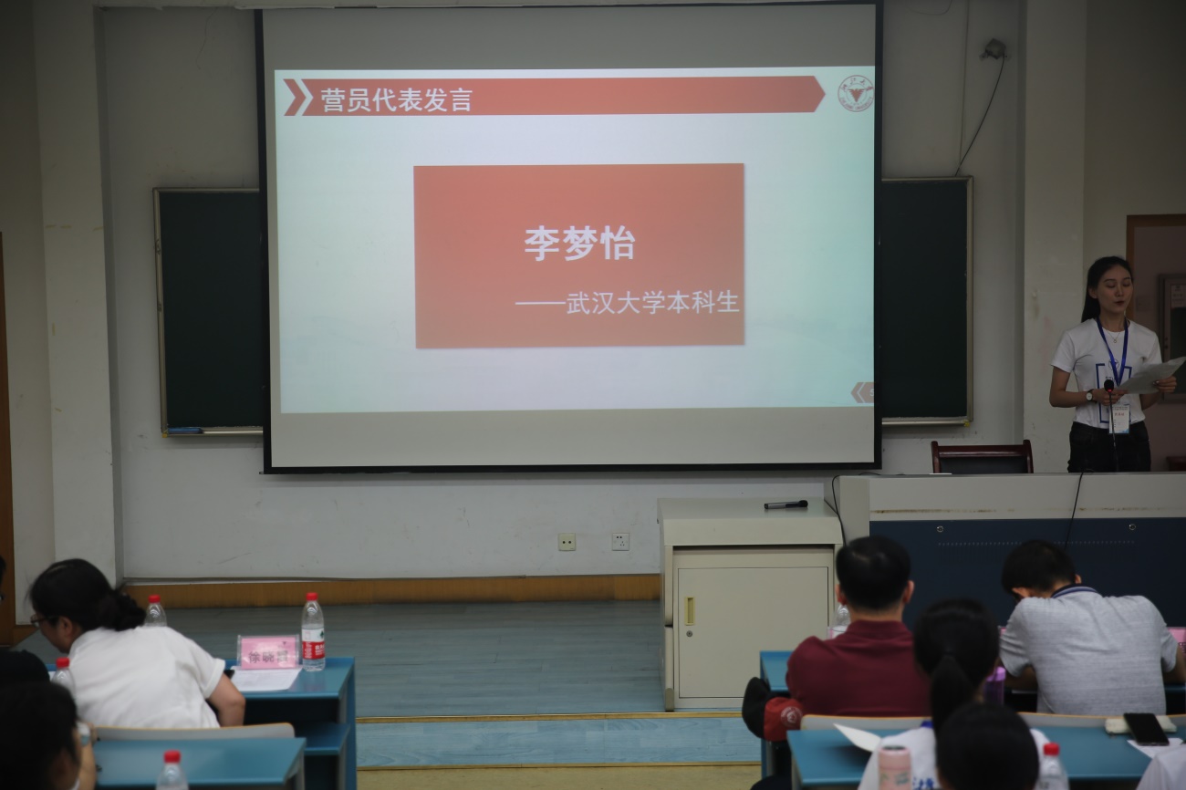 2018级马原专业硕士研究生赖嘉俊同学作为在校生代表发言。她向营员们分享了入学一年来的收获与感悟,浙大马院不仅是一个学术和成长的绝佳平台,而且是一个充满关怀的大家庭。在这里,我们能与学术大牛对话,还能自由探寻成长成才的丰富可能。