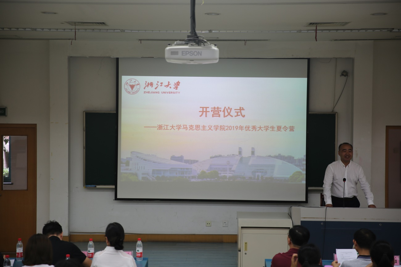 夏令营开营仪式于上午8点30在浙江大学艺术楼D102室举行,院长助理代玉启老师主持开营仪式。