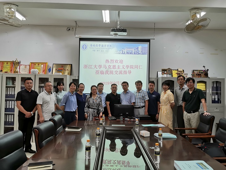 为加强合作交流,学习兄弟院校在一体化推进思想政治理论课专题教学与实践教学方面的经验,2019年8月底9月初,浙江大学马克思主义学院“概论”教研中心一行11人在教研中心主任傅夏仙老师的带领下,先后赴海南大学马克思主义学院和海南热带海洋学院马克思主义学院交流学习。
