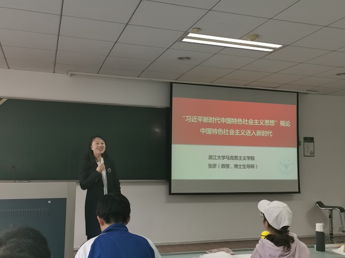 2019-2020学年冬学期,浙江大学“习近平新时代中国特色社会主义思想概论”课在紫金港校区开课。2019年11月13日下午,课程负责人张彦教授主讲导论“中国特色社会主义进入新时代”,张彦教授通过科学的理论、严谨的数据、鲜活的案例、生动的语言帮助学生准确把握中国特色社会主义新时代的科学内涵,了解中国特色社会主义进入新时代的重要意义,正确认识社会主义初级阶段主要矛盾的转化。