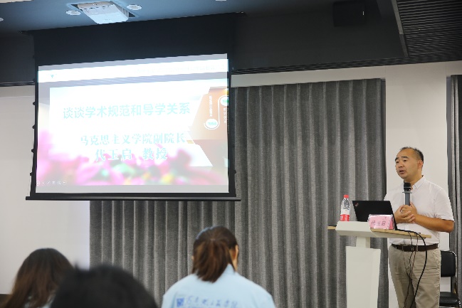 9月12日下午,浙江大学马克思主义学院2020级研究生新生始业教育第三讲——学术行为规范和导学关系专题报告顺利开讲。报告会由马克思主义学院副院长代玉启担任主讲,2020级全体研究生新生参加。