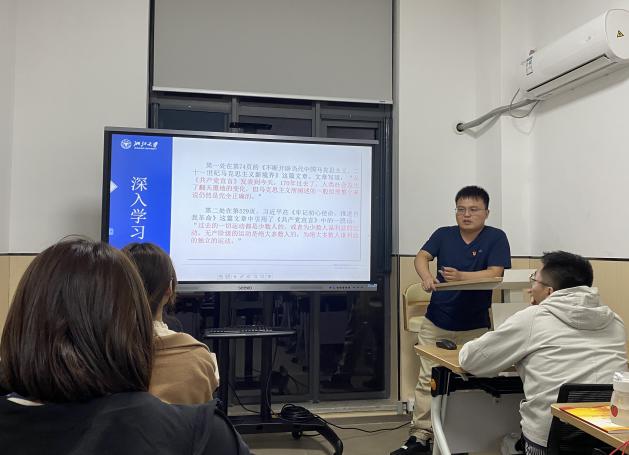 首先,支部书记桑建泉老师向党小组全体党员介绍了《习近平谈治国理政》第三卷的主要篇目、关键词及内容体系,并以党课的形式同各位党员分享了自己的学习体会。桑老师以《习近平谈治国理政》第三卷中有关《共产党宣言》的论述为例,分享了自己的读书方法,并嘱咐同学们在学习《习近平谈治国理政》第三卷时要结合经典学、结合时代形势学。