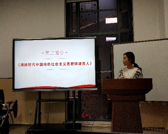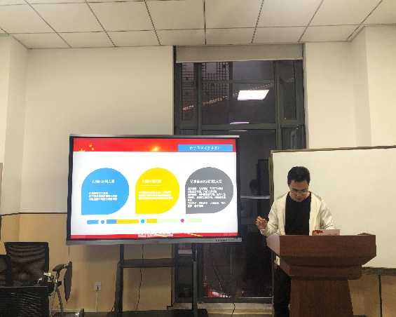 会议第二项内容是集体理论学习,支部三位支委分别就其对《习近平谈治国理政》第三卷的学习心得进行分享和汇报。支部副书记游志纯同志从《习近平谈治国理政》第三卷的历史背景与实践基础、思想方法和工作方法、人民情怀和世界胸怀三个角度谈了自己的阅读感受。支部组织委员覃鑫渊同志通过联系抗疫攻坚战、抗洪救灾战和脱贫攻坚战等社会实际,分享了自己学习第四专题“坚持以人民为中心”的学习感悟。支部宣传委员田菂同志从习总书记对思政课教师提出的六个要求中的“政治要强”“情怀要深”“思维要新”三个要点,结合自身专业谈到了对专业学习的启示。支部书记李岩同志对三位同志的发言进行了总结,并鼓励更多党员同志积极分享学习心得和撰写读书报告。