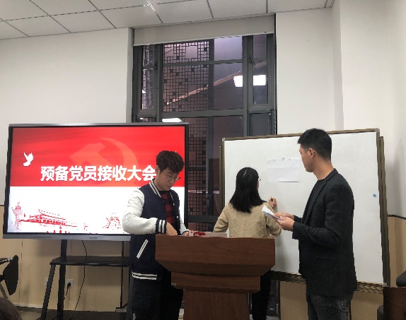 会议第一项内容是预备党员接收大会,依照党章和党员发展细则的相关规定,大会对接收李佳威同志为预备党员进行了讨论和表决。会上,李佳威同志、入党介绍人、支委会各自汇报了有关情况,支部各党员同志对其接收事宜进行了讨论,肯定了该同志政治思想觉悟高、学术成果丰富等优点,也指出了其存在的不足。经过在场正式党员无记名投票,一致同意接收李佳威同志为预备党员。