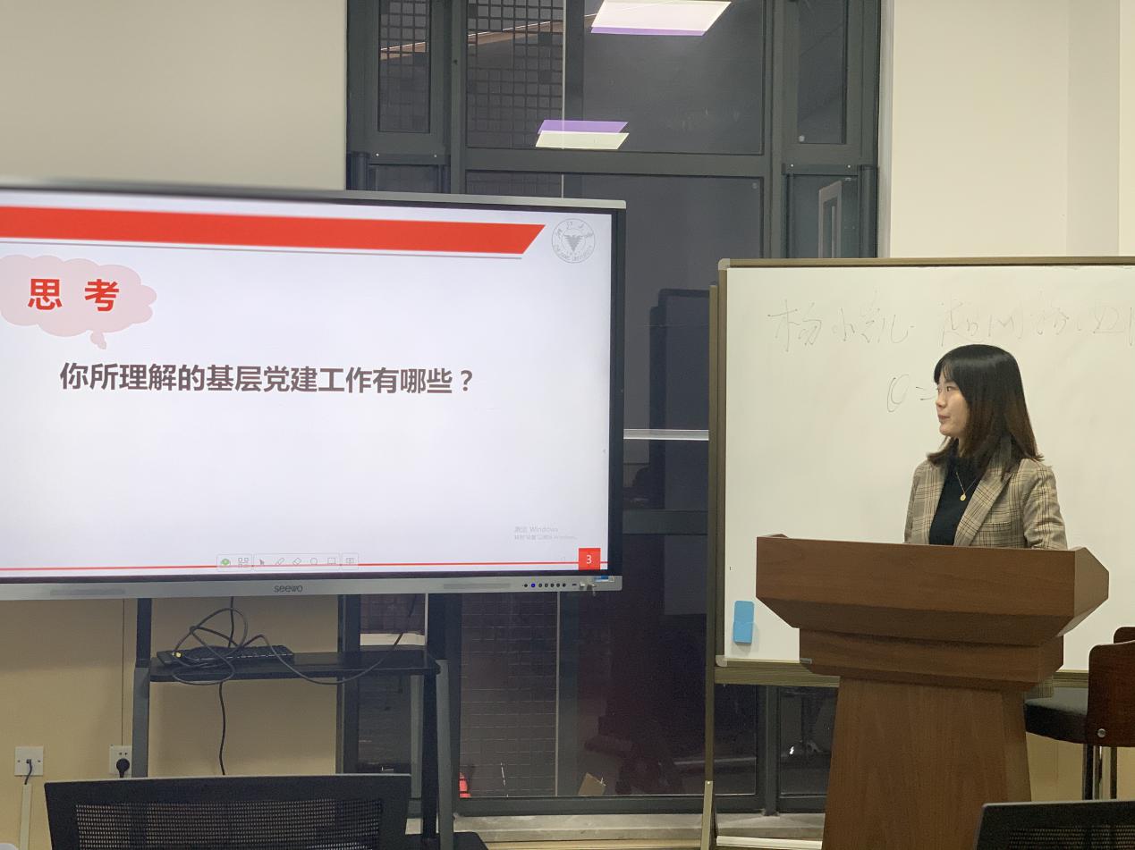会议伊始,何老师带领大家对基层党务工作的主要内容进行思考,并围绕党支部建设工作和发展党员工作两个部分展开培训指导和经验分享。