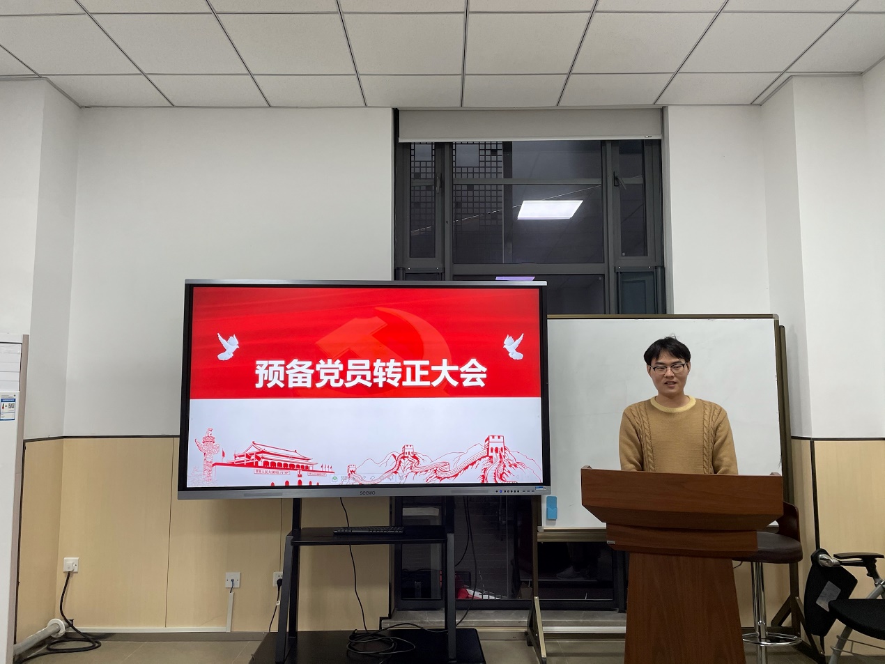 会议第一项内容是讨论预备党员转正。预备党员张登皓同志首先就自己在预备期间中的表现作了陈述,总结了预备期内,他在思想上、学习上、生活中及工作上的认识和进步,最后表达了自己加入中国共产党的坚定决心。随后入党介绍人、与会党员对申请转正的预备党员发表了意见,肯定了张登皓同志在预备期的良好表现。最后,通过无记名投票表决,一致同意张登皓同志按期转正。