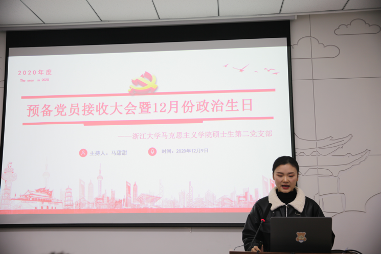 12月9日,马克思主义学院硕士生第二党支部在学院107教室召开十二月党支部大会,由党支部副书记马甜甜同志主持。大会共包含四项议程安排,一是讨论接收丁中正等三名预备党员同志;二是举行第二次月“习”经典党员讲党课活动;三是庆祝12月份入党同志的政治生日;四是进行党支部学风建设。
