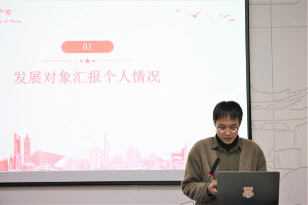 大会第一项,讨论了发展对象丁中正、王珊、章甜甜三位同志的入党问题。首先,各位发展对象汇报个人情况,由入党介绍人、支部委员进行介绍并提出相应意见,与会党员进行无记名投票表决。最终丁中正、王珊以及章甜甜同志均全票通过。