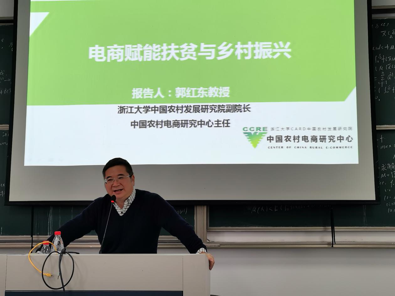 12月14日下午玉泉校区曹2-205,浙江大学中国农村发展研究院副院长、中国农村电商研究中心主任郭红东教授为我们带来了“电商赋能与乡村振兴”的专题课堂。