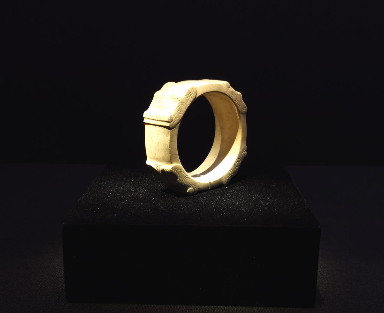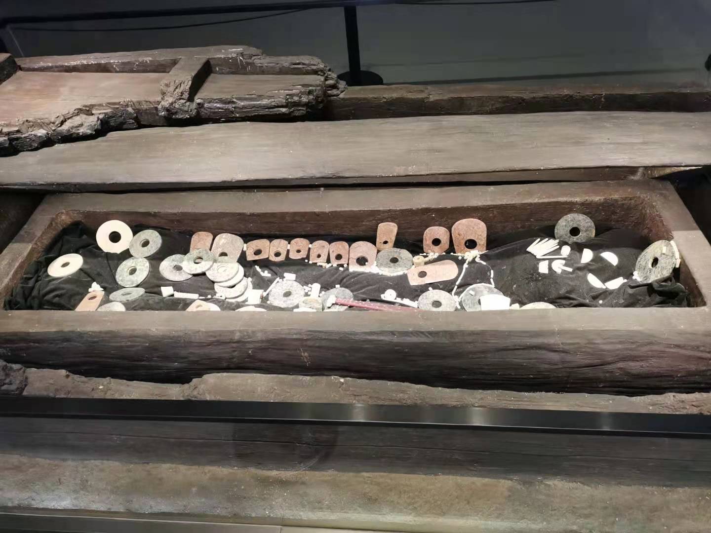 第三展厅设于博物馆主楼二层西侧,复原展示了几座良渚墓,具有很强的视觉震撼,同时在四周墙面展示了不同等级的墓葬出土照片,通过丰富的墓葬资料的对比展示来揭示良渚文化社会等级的分化和阶级的形成,把良渚文化的诠释上升到文明的高度,整个展览达到了高潮。