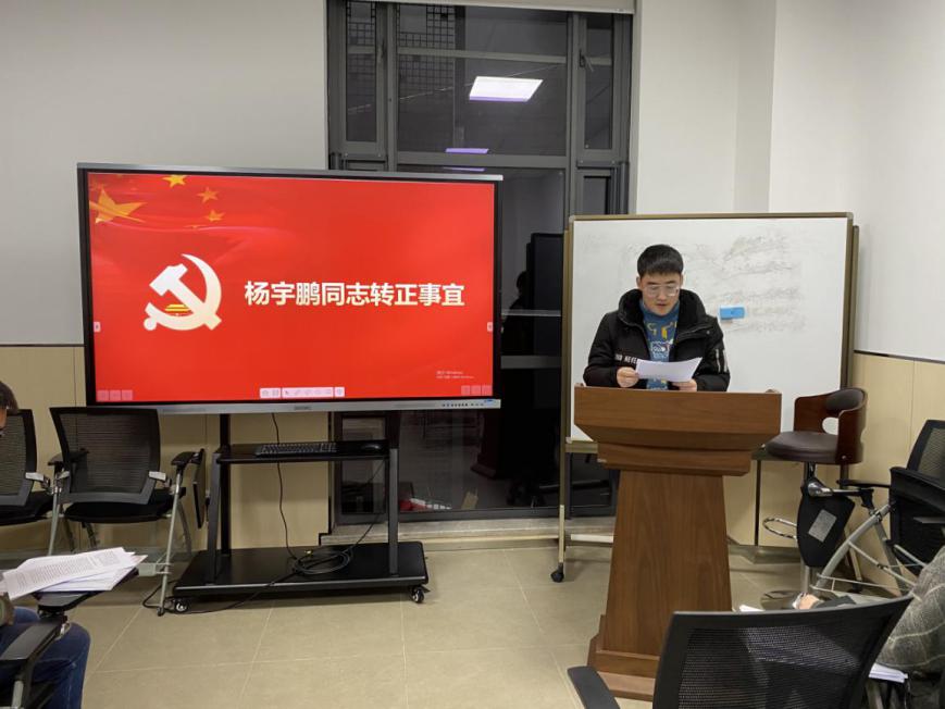 三位预备党员依次宣读了自己的转正申请书,从思想、学习、工作、生活等各个方面向党组织汇报个人的学习成果与入党决心。