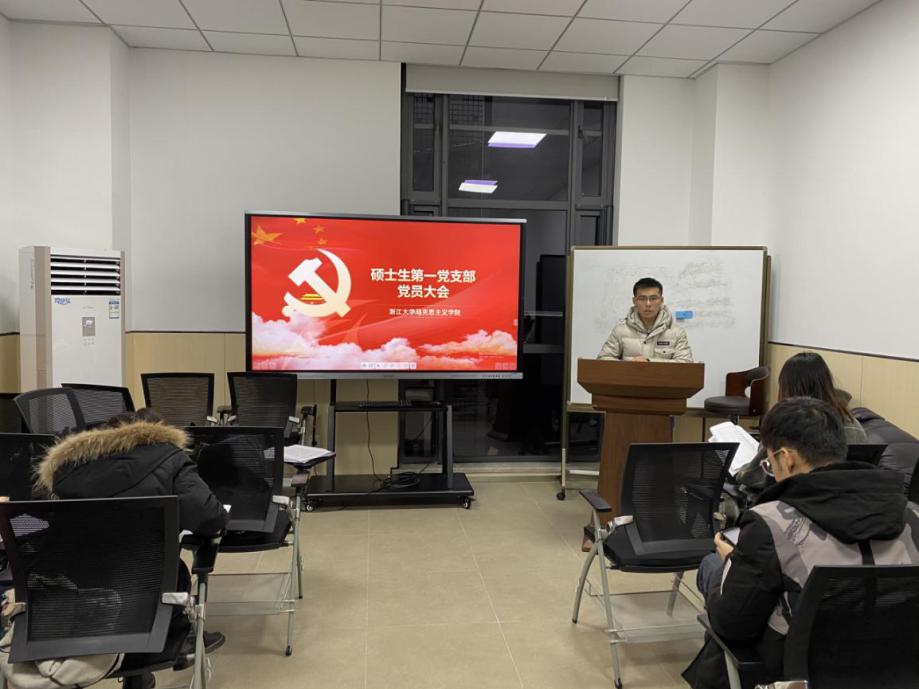 12月18日下午,马克思主义学院硕士生第一党支部于学院104教室召开党员大会。会议由党支部副书记陈宇轩同学主持。