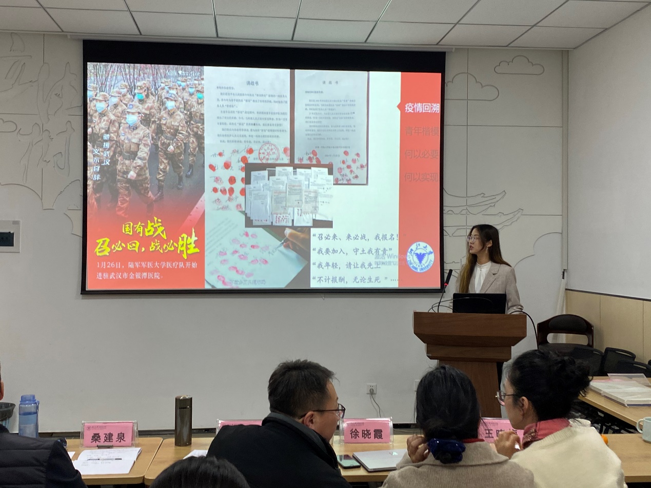 张家宁的微党课从疫情回溯、青年楷模、青年肩负时代使命何以必要、何以实现四个方面来展开。她说道,青年应强化担负时代使命的责任,涵养担负时代使命的内涵,锤炼担负时代使命的品格,增强担负时代使命的本领,新时代青年要做走在时代前列的奉献者和奋进者。