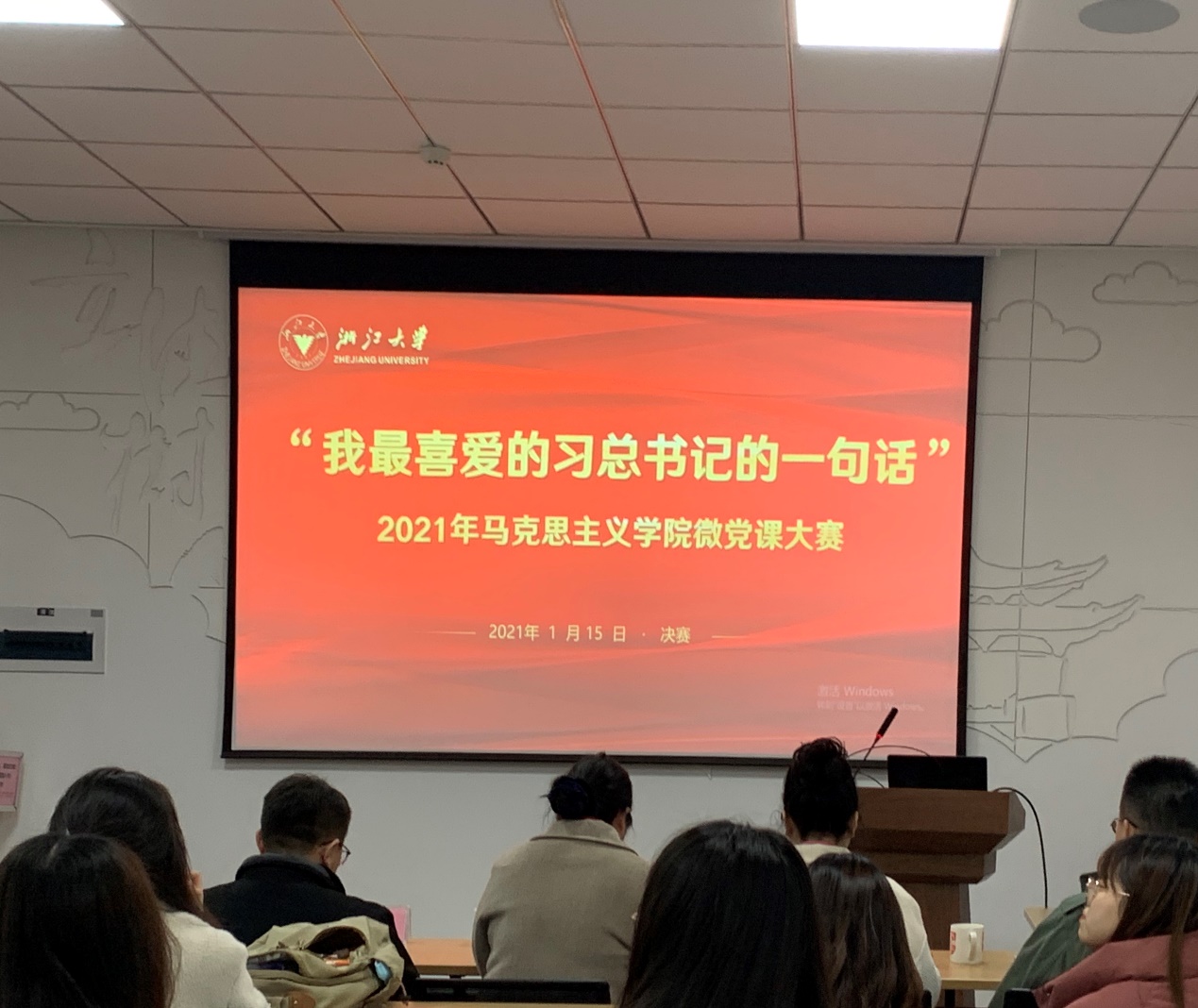 1月18日晚,马克思主义学院微党课大赛决赛于学院107教室举办。此次大赛主题为“我最喜爱的习总书记的一句话”,在初赛阶段,同学们积极提交参赛作品,评委们经过筛选,在初赛的二十余篇微党课作品中推选出十篇优秀作品入围决赛。这十位选手现场比拼,围绕“四史”等内容,以真挚的情感、生动的故事为大家呈现了一场精彩的微党课盛宴。徐晓霞老师、张立程老师、王晓梅老师、包大为老师、桑建泉老师、方瑞老师莅临现场担任评委。