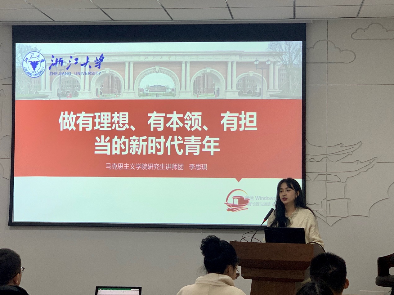 李思琪说道,“堪当大任的青年一定是有理想有本领有担当的青年”,实现中华民族伟大复兴的中国梦,广大青年既是追梦者也是圆梦人。毛泽东、周恩来、邓小平等老一辈革命家为青年树立了光辉的榜样,竺可桢老校长的“两问”仍回响耳畔,秦玥飞、黄文秀的事迹还历历在目。李思琪以饱满的感情讲述着青年的 使命与担当,在改革开放和中国特色社会主义的伟大实践中,广大青年应砥砺奋进,打好堪当大任的本领基础,自觉肩负起实现民族复兴的担当,在青春的接续奋斗中书写更辉煌的明天。