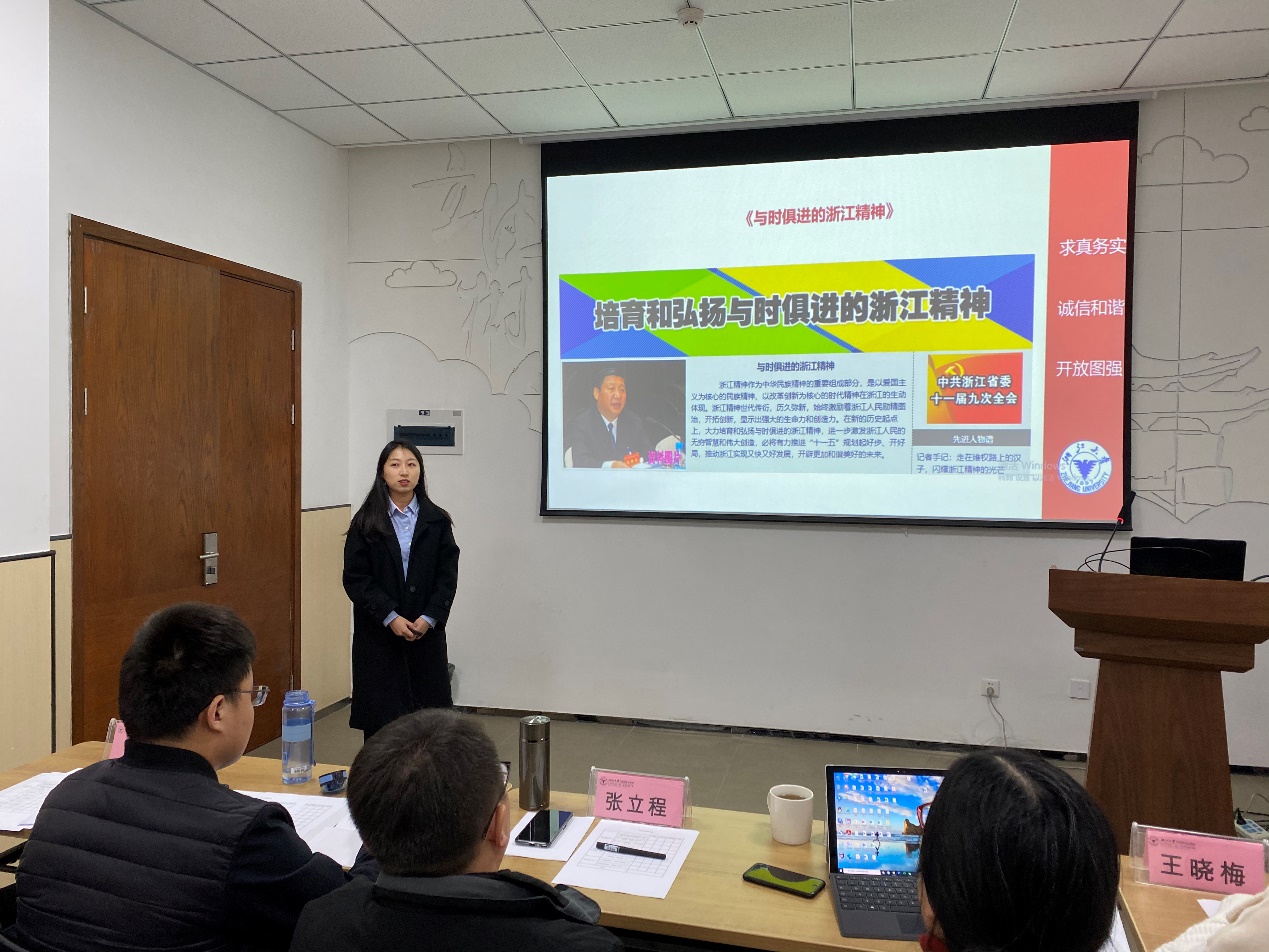 张卓舒的微党课为我们解读了求真务实、诚信和谐、开放图强的浙江精神。求真务实就是尊重规律,崇尚科学,真抓实干,讲究实效,最多跑一次改革、八八战略、探索民营经济发展新路径……共圆中国梦的伟大实践中,处处是浙江探索求真的身影。诚信和谐,就是诚实立身,和美与共,和睦有序,浙江全景式的经济社会改革画卷处处彰显着和谐发展的价值取向。开放图强,就是海纳百川,兼容并蓄,砥砺奋进,在“跳出浙江,发展浙江”的发展思路引领下,浙江积极参与全球合作与竞争,一带一路、G20峰会、2022年杭州亚运会……浙江的元素闪耀在世界的舞台。精神之力,永不褪色,浙江精神为浙江发展提供无限可能。