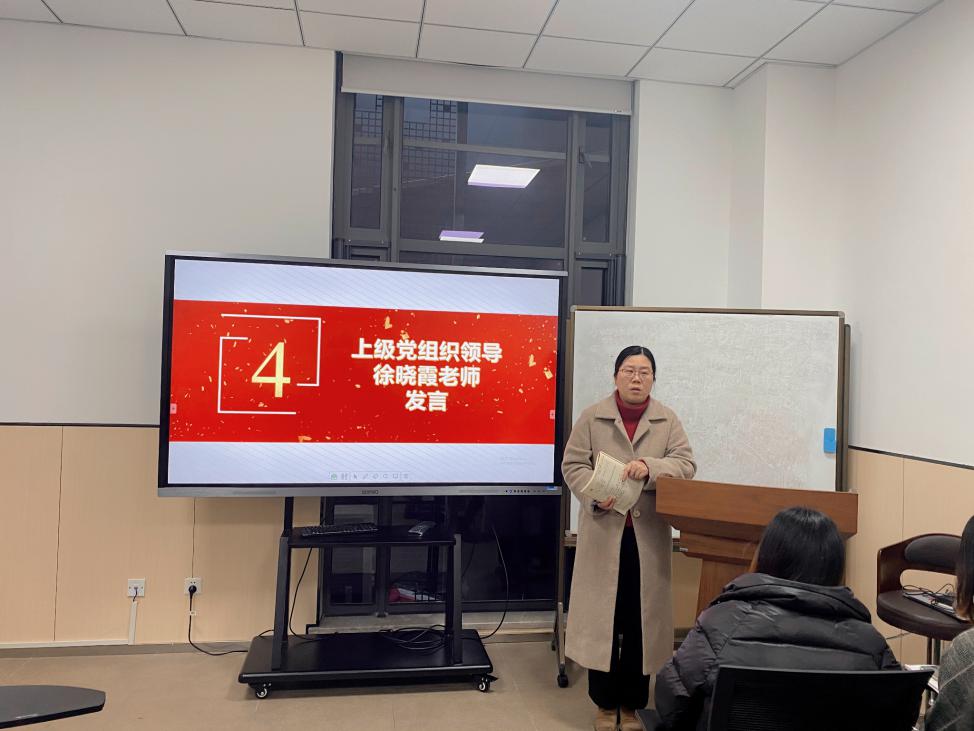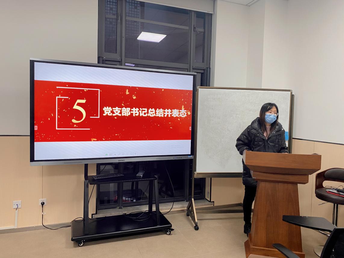 最后,党支部书记李亚楠老师进行总结及表态。她表示,在接下来的支部工作中会积极吸取并落实徐书记及与会党员同志提出的建设性意见,推动支部整改进程。同时,也会保持已有经验,继续落实好“三会一课”制度,带领广大党员同志用理论武装头脑、指导实践,充分发挥党支部的战斗堡垒作用。