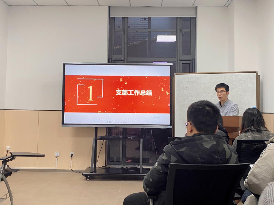 会议的第一项议程为支部工作总结。陈宇轩同志带领大家回顾了支部在本年度开展的相关活动。在理论学习层面,支部多次召开《习近平谈治国理政》第三卷学习交流会议,并就抗美援朝70周年及深圳改革40周年的主题积极同学工部支部开展结对活动。党支部的成员或进行理论宣讲、或以自己及家人的生动经历进行案例分享,述说抗美援朝的不朽精神,描绘改革开放以来中华民族所取得的系列瞩目成就。与此同时,支部还积极推进学风建设,先后开展导学关系建设活动及“塑良好学风,树党员模范”活动。此外,支部还稳步推进了吸纳积极分子、接收预备党员及预备党员转正等工作。