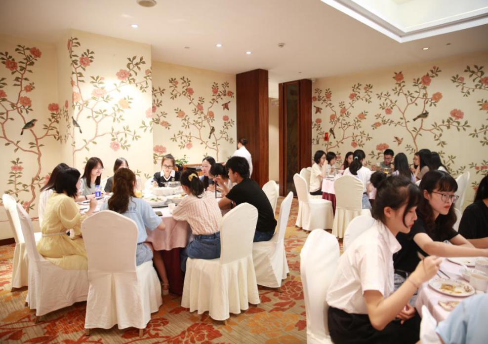 经过短暂的休整,晚上6点,营员们齐聚酒店二楼大厅进行用餐,并进行了简单的破冰活动。暖心的交流和互动推动着温情在空气中流动,同学们也进一步认识和了解。不知不觉,时光已然流逝,开营前的一天就在忙碌和激动中过去。