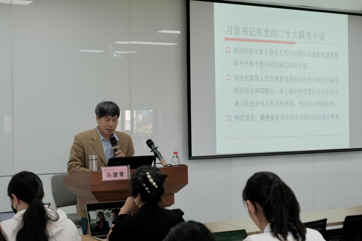 10月24日下午,浙江大学马克思主义学院2022年“从心出发,不负韶华”大学生理健康教育系列之“美好生活 从心开始——研究生阳光心态的培养”主题讲座在成均苑3幢521教室举行,由浙江大学求是特聘学者、国家万人计划教学名师、马克思主义学院博士生导师马建青教授主讲。