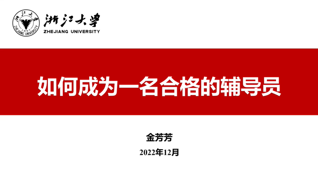 党委学工部副部长金芳芳以“如何成为一名合格的辅导员”为题,围绕以下三个问题展开:一是“认识辅导员”,通过防控期间辅导员工作时的照片展现了辅导员对同一件事情在不同岗位上展现的不同工作职责,并从历史发展、重要文件等方面引导同学们全面认识辅导员;二是“辅导员的要求”,金芳芳老师解读了教育部第43号令《普通高等学校辅导员队伍建设规定》中对辅导员工作的九大工作职责,并提出辅导员需要建构基础知识、专业知识和法律法规知识三大知识体系;三是“辅导员工作怎么做”,金芳芳老师主要围绕“主责与主业”“艺术与方法”“个人与集体”“赞美与批评”“工作与生活”等工作中的“五个关系”向同学们提供建议和方法。最后,她鼓励同学们超越知识传授、提升实践能力,扩大育人场域与资源供给,努力成为一个合格的、优秀的辅导员。