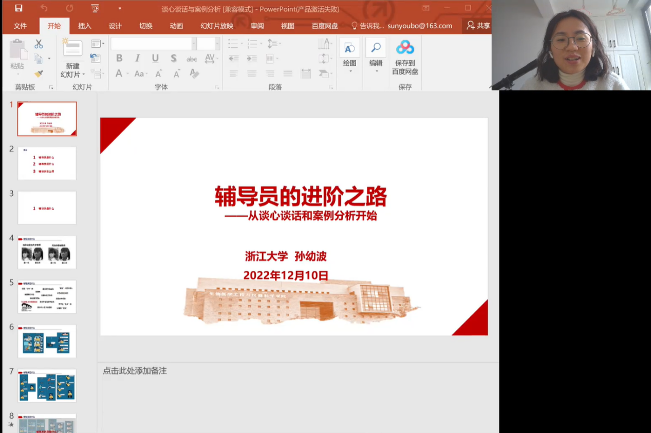 动物科学学院2020级兽医学硕士生薛甜认为,从辅导员发展历史到当代任务、从谈心谈话到公文写作、从研究工作一体化到备考建议,课程设置非常全面细致,受益匪浅!