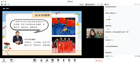 本次线上教学充分展示杭州亚运背后的体育精神,让孩子们感受朝气蓬勃的青春力量。宣讲团成员蔡安禧以“社会主义青年的体魄”为主题,结合马克思关于全面发展的社会主义体育构想,融入党的二十大报告确定的“体育强国”目标,充分展现体育精神对于塑造人的自由全面发展的重要意义。宣讲团成员钟源以中国国球“乒乓球”为切入口,增强同学们对亚运乒乓球项目的了解,以小见大,让他们真正感受到中华体育精神。亚运会各项项目承载着向上的奋斗心,展现出同行的团结情,奋勇拼搏的体育精神是青年活力的生动体现。
