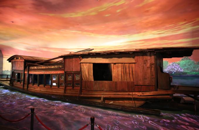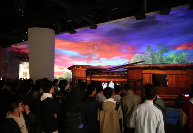 秀水泱泱,红船依旧。纪念馆二楼,一艘1:1的红船模型中以全息影像技术向游客们展示了当时十多位代表在红船内开会的场景,吸引了同学们驻足观看。身临其境的体验,一个大党与一条小船的故事,让同学们更加深刻的领悟到中国共产党为什么能,中国特色社会主义为什么好,归根到底是马克思主义行,是中国化时代化的马克思主义行,更加坚定了继承光荣革命传统、矢志报国奋斗的决心。