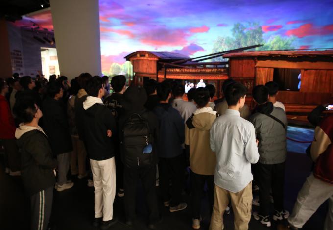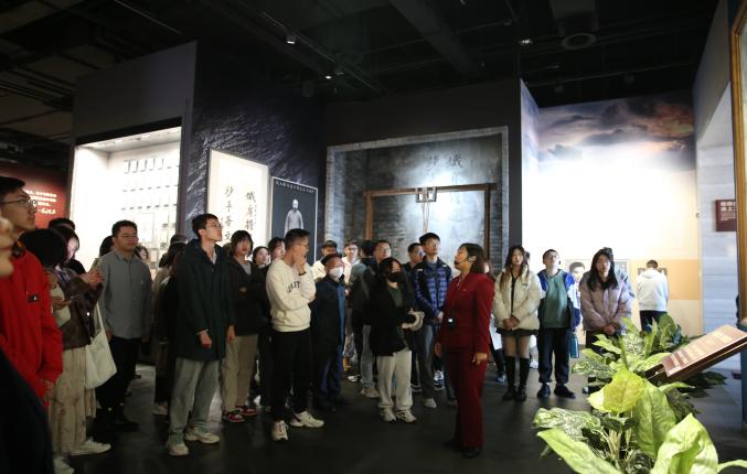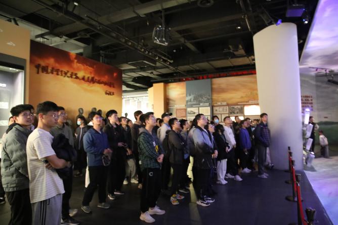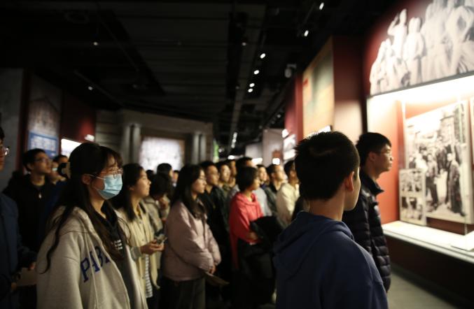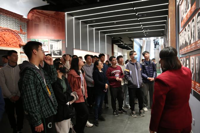 跟随着讲解员的步伐,同学们认真聆听解说,驻足细观书籍、照片、遗物等珍贵史料。锈迹斑驳的战斗武器诉说着烽火硝烟的峥嵘岁月,饱经沧桑的书籍印记记录着艰辛伟大的革命历史,复原的嘉兴火车站追忆着筚路蓝缕的时代变迁。一幅幅图画、一幕幕场景,让同学们追溯到历史变迁的痕迹,感受到中国革命红船百年航程的伟大。