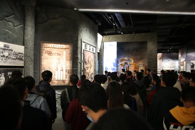 上午九时,师生一行到达南湖革命纪念馆新馆,在讲解员鲍芳的带领下入馆参观。展厅里正在展出的基本陈列是《红船起航》,这是南湖革命纪念馆经过3年筹划、6个月闭馆重装,于2021年6月5日正式开展的主题展。该主题展以弘扬伟大建党精神和红船精神,传承红色基因、庚续红色血脉为主旨,以中国革命红船起航为主题,以党的初心和使命为主线,以党的发展历程为脉络,分为“救亡图存”“开天辟地”“光辉历程”“走向复兴”四个部分二十一个单元。