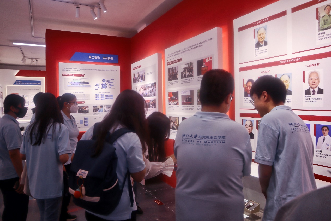 为全面贯彻党的二十大精神,深入开展学习贯彻习近平新时代中国特色社会主义思想主题教育,贯彻习近平总书记对浙江大学的重要指示精神和浙江大学第十五次党代会精神,5月26日,马克思主义学院硕士生第二党支部与中共党史党建研究所党支部一同前往浙江大学党建馆,参观学习红船起航主题展与心怀“国之大者”、奋力“走在前列”——浙江大学学思践悟习近平总书记系列重要指示精神办学成果展。