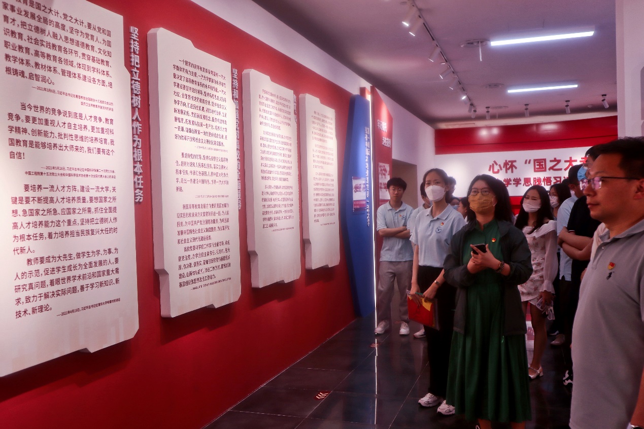 心怀“国之大者” 奋力“走在前列”——浙江大学学思践悟习近平总书记系列重要指示精神办学成果展,以习近平总书记高度关心重视高等教育和世界一流大学建设,先后作出系列战略部署和重要指示批示为基础,摘录了党的二十大报告中有关教育、科技、人才的重要论述,为中国一流大学群体的整体崛起擘画了宏伟蓝图。支部同志们浏览二十年间浙江大学取得的各项事业的丰硕成果,倍受鼓舞,体会到了浙江大学始终心怀“国之大者”,在高远使命引领下奋力迈向世界一流大学前列的奋斗与拼搏,更坚定了自己身为新时代青年的责任担当,身为浙大人的使命担当。