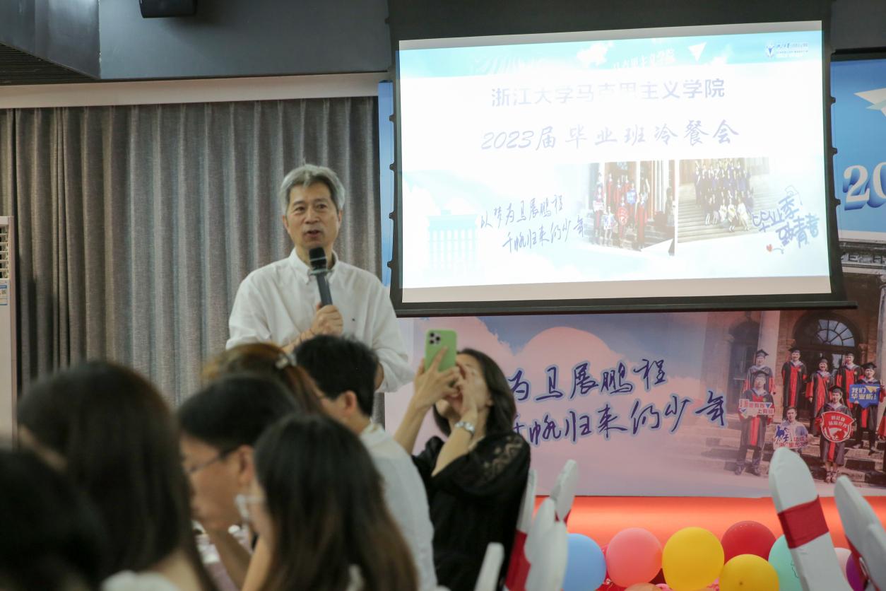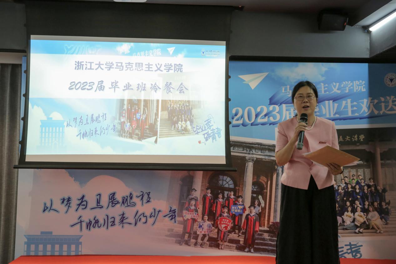 这是2023届毕业班最后一次班会。徐晓霞副书记首先祝福同学们毕业快乐,前程似锦!同时也希望同学们在今后的学习和工作中秉承浙大校训,厚植家国情怀,继续保持认真严谨的治学态度,诚信自律,敬业爱岗,又红又专!
