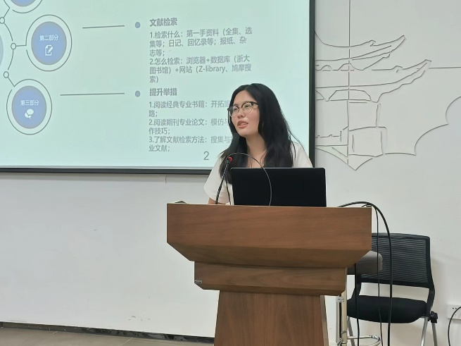 凡萌玮对孙建猛的分享高度赞赏,她认为在“模仿”方面,我们可以在阅读论文的过程当中提升自己的语感。浏览器等在资料收集上确实有很大的作用,大家可以尝试进行发掘。此外,她还就怎样更好地阅读旧报纸、旧杂志等给了大家一些建议,并且表示学校的图书馆资源不但可以用于中文资料的收集,在外文资料的收集上也可以有所帮助,可以多加留意和利用。