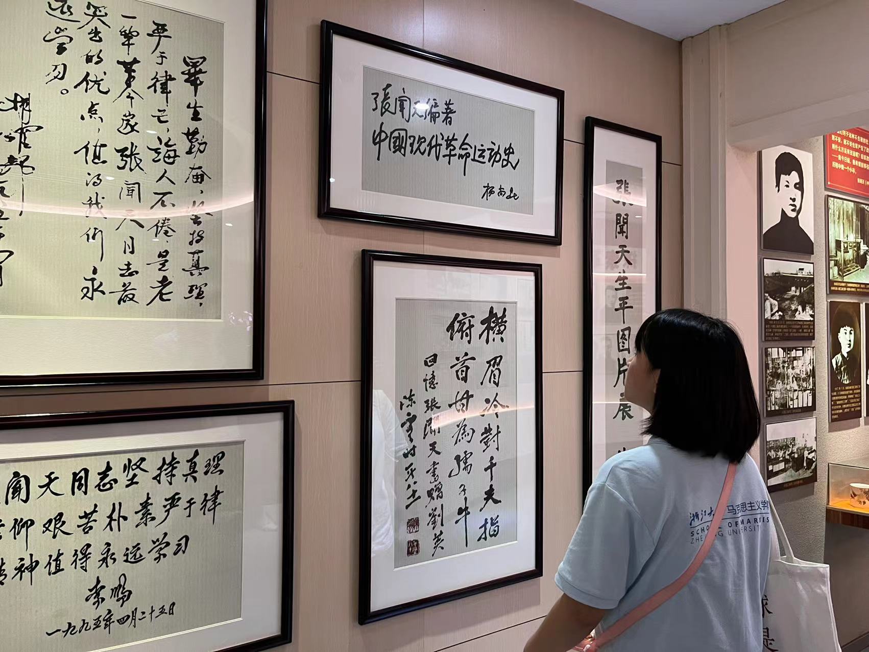 与此同时,社会实践团在讲解员的带领下参观了河海大学校史馆与张闻天纪念馆。康斯洋同学望着张闻天纪念馆门厅前张闻天同志的塑像和邓小平同志的题词“回忆张闻天”,深深感慨道:“老一辈革命家在追求理想的道路上充满波折,但他们始终没有忘记心中的红色信念,没有抛弃过自己的初心使命。我们要把张闻天等老一辈无产阶级革命家的遗志继承下去,为实现中华民族伟大复兴的中国梦贡献出自己的青春力量。”