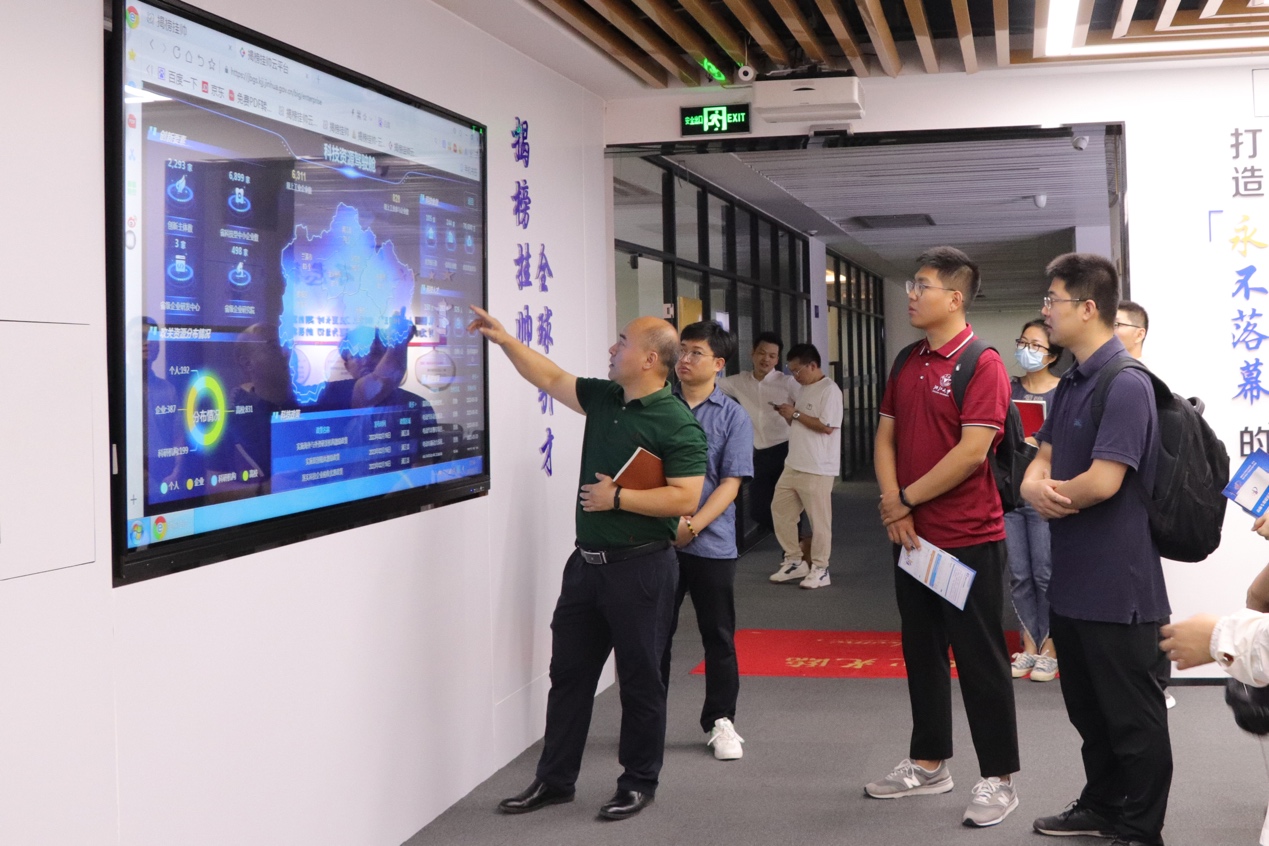 金华队一行调研走访“揭榜挂帅”全球引才服务中心、浙中技术交易大市场、数智赋能中心、浙江大学—金华联合创新概念验证中心、金华金开招商招财服务集团有限公司、金华科技园创业服务中心有限公司等企事业单位的平台建设和载体运作情况。