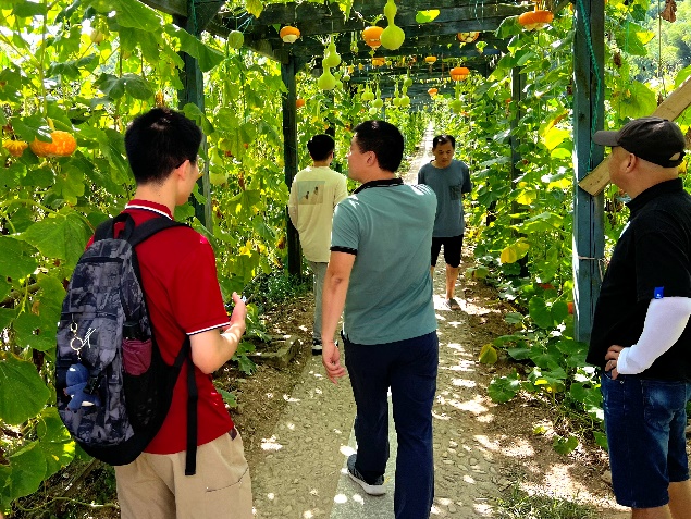 17日下午衢州实践团在柯城区组织部和指导老师丁老师的带领下抵达七里乡, 衢州市世外桃源——七里旅游景区为衢州市首个农村休闲游4A级旅游景区,以保存良好的传统村落、绿水青山粉墙黛瓦出名,更以特色生态游和特色民宿被大家喜爱,此地依山傍水、山高谷深、空气凉爽。实践团首先在乡政府领导的带领下来到早田自然村蔬果长廊,长廊位于上村早田自然村,是景区的特色产业景点,可提供高山蔬菜采摘游,让游客充分感受蔬菜采摘的乐趣。之后实践团来到“我在七里有块田”共富工坊考察,七里乡于2022年6月创新推出“我在七里有块地”菜地认购活动,认购方可以拥有一块菜地一年的使用权,并成为农场会员,配备专属菜地管家,享受蔬菜的免费配送服务,还可获得价值不等的农家乐、民宿抵金券和漂流体验券、农产品大礼包等福利,此方案使农户的抛荒地得到了利用、满足了城市居民的乡愁需求、带动了旅游消费的升级,并且很多农户被“返聘”回来种地相当于开拓了就业机会,同时带动了带动民宿、农家乐的生意,这一创举真可谓一举多得,极大拉动了乡村整体经济发展。接着大家来到了大头村黄精基地共富工坊及观景平台考察,黄精是传统的食药两用植物,自古以来被视为益寿珍品。大头村采取套种的方法,把喜阴的黄精种植在梅树等树下,目前,按现行市场价75元/kg计算,一座山年产值几十万元,实现山区群众靠种植黄精也能富。最后到达平仲别院民宿,自2005年当地政府开始号召村民利用山区的自然环境优势兴办农家乐、民宿起,发展到现在,七里乡已经成为衢州民宿数量最多、最受欢迎的地方,七里乡从十几年前衢州柯城区最穷的乡镇变成了现在远近闻名的避暑胜地,有特色环境优美的民宿数不胜数,我们参观的平仲别院民宿就是七里乡利用收储的老宅,引进投资建成的精品民宿之一,此民宿环境优美,设施完善,小桥流水,别有一番风味。这里的民宿的发展不只盘活农村的空置房屋资产,还将民宿与餐饮、文创产品相互融合,让民宿不仅具有住宿功能,同时又成为一个集多元素于一体的乡村民宿品牌。
