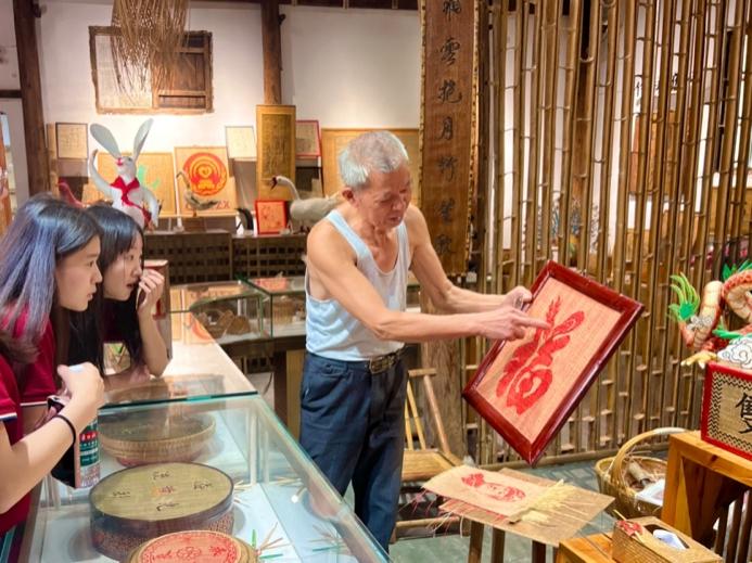 沟溪乡余东村于2020年9月正式启动未来乡村建设工程,围绕农民画做大研学产业、文创产业、旅游产业,促进农文旅融合发展。实践团队成员先后参观了中国乡村振兴美术馆、南孔文创、竹编馆等,认真听取了余东农民画发展历程以及助富带富的丰硕成果,还亲身体验了竹编技艺。