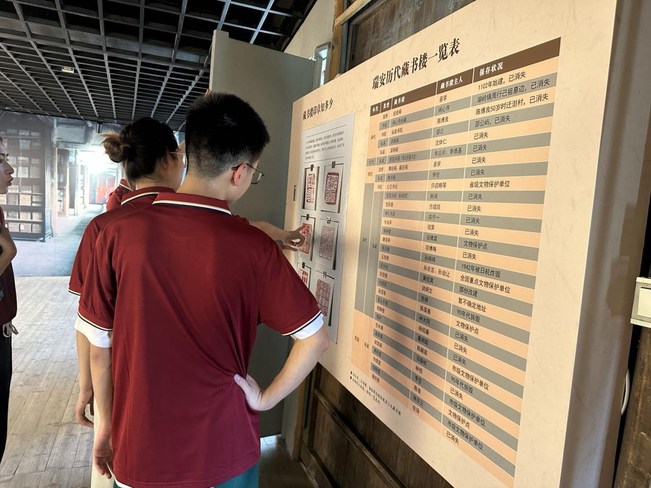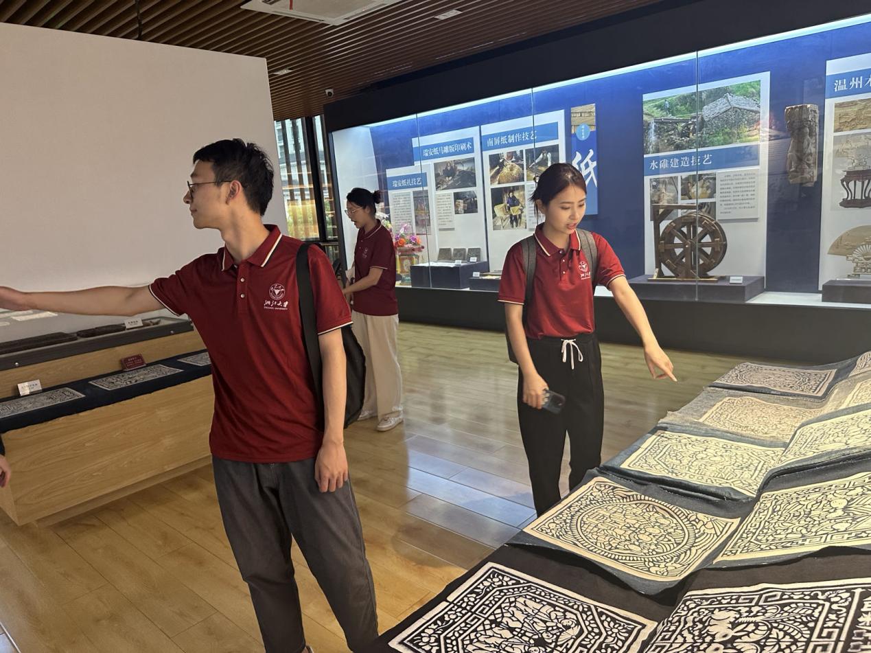2023年7月20日,温州队在瑞安忠义街玉海楼、非遗馆、木活字印刷展示馆、东梨民艺博物馆等地感悟先人所创造的文化精髓,在国旗教育馆学习国旗背后的红色故事。忠义街是古时达官显贵的官邸府衙聚集地,时至今日其内存在的古建筑仍保留着独特的风韵。正如习近平总书记强调的,在新的历史起点上建设中华民族现代文明,要立足中华民族伟大历史实践和当代实践,把马克思主义基本原理同中国具体实际、同中华优秀传统文化相结合。此次实践考察,为实践团学员们以亲身体验来深刻体悟“两个结合”提供了良好契机。