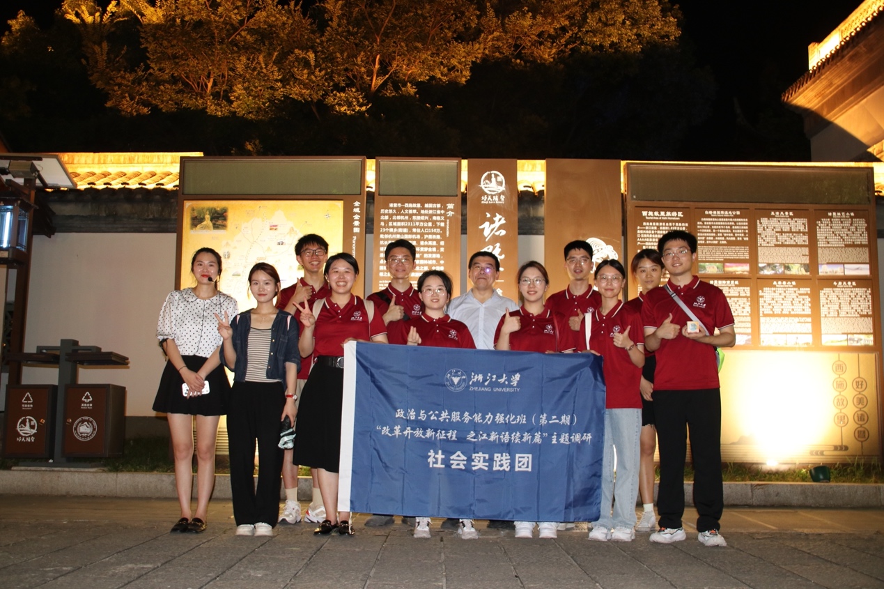 为提升实践能力,培养新时代信念坚定、对党忠诚、实事求是、担当作为、可堪大用的国家治理人才和未来领导者,由浙江大学政治与公共服务能力强化班(第二期)学员、马克思主义学院学生共83名同学,10位指导老师组成的10支实践团队,分别于2023年7月17日至7月21日、7月24日至7月28日,分两批赴宁波、温州、嘉兴、湖州、绍兴、金华、衢州、舟山、台州、丽水开展调查研究。时值改革开放45周年,本次调研将以《之江新语》文本作为理论来源、问题导引,在其跨越时空的思想力量指导下,总结改革开放浙江省域历史经验,发现“构建新发展格局、着力推动高质量发展”中的新形势、新难题、新作为,展现兼具创新性与可行性的青年思考。