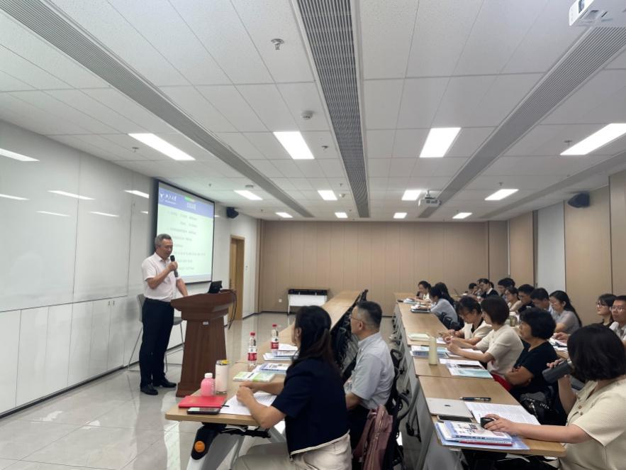 最后,马克思主义学院副院长、思政所所长代玉启作教学相关文件解读和总结。代老师带领教师们一起学习了今年教师节“习近平致全国优秀教师代表的信”,并就如何看待教学与课件的关系、如何把握教学共性和特性的关系等多个方面进行了阐释。他强调思政课教师应不断学习总书记的讲话精神和理念,深入理解与体会教育家精神,并将其融入思政课教学中。