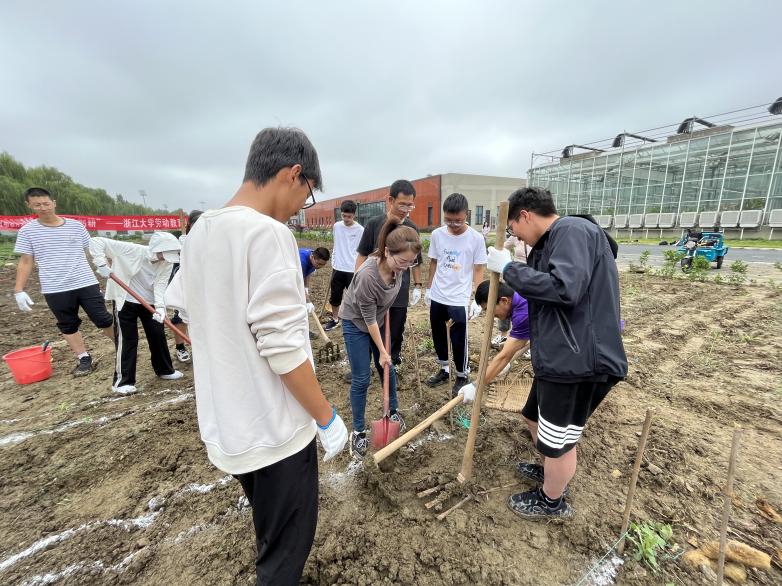 2023年9月24日,浙江大学马克思主义学院“求是躬耕”劳动教育进思政课堂启动仪式在浙江大学紫金港校区举行。15个来自“思想道德与法治”班的近一百名大一学生与任课老师们一起完成田地开垦、播种、浇水等一系列田间劳动工作。秋分时节、农耕正忙,同学们走进田间地头,体验播种萝卜的劳动,感悟“求是躬耕”的真谛。