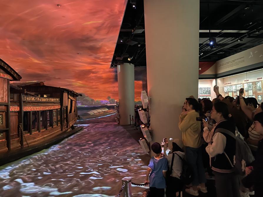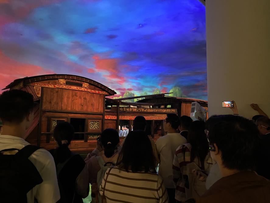 以VR、AR为代表的现代技术为现场教学提供了高效的实践载体,实现了虚拟与现实的融合,极大增强了场馆参观者的参与感与沉浸感。在纪念馆二楼,1:1的红船模型以全息影像的形式向同学们展示中共一大的生动景象,身临其境地重温革命先烈的英勇事迹和中国共产党建党的光辉历史。