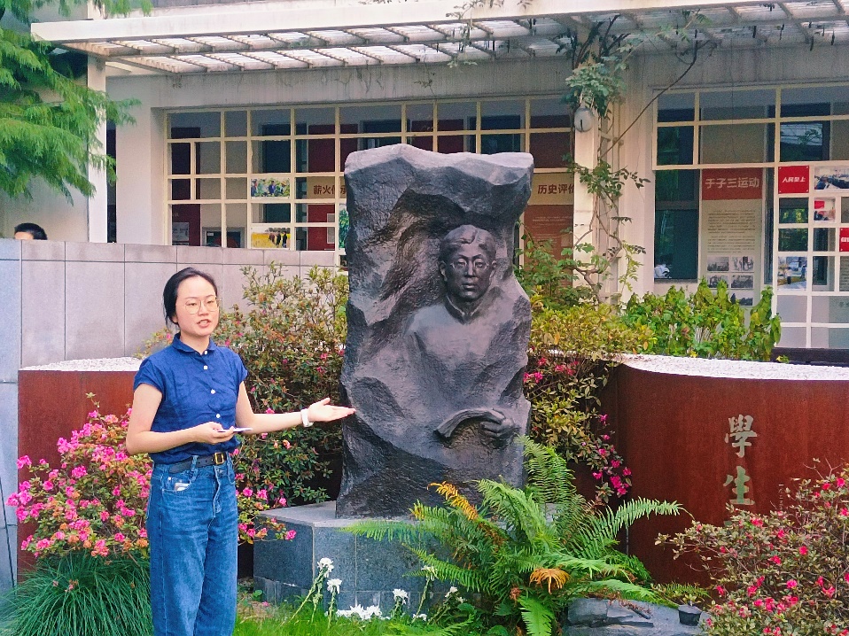 党建馆现场学习过后,师生移步至子三园开展进一步学习。宣讲同学蒲韵蓓向大家介绍了于子三同志为了自由民主挥洒热血的故事。
