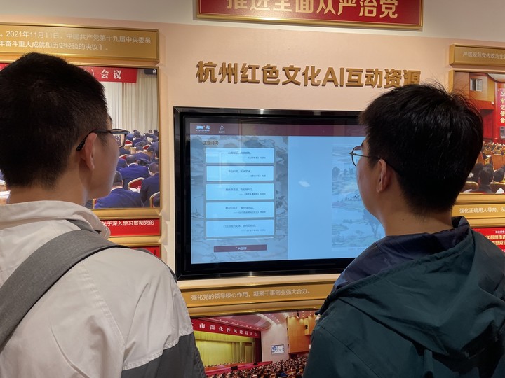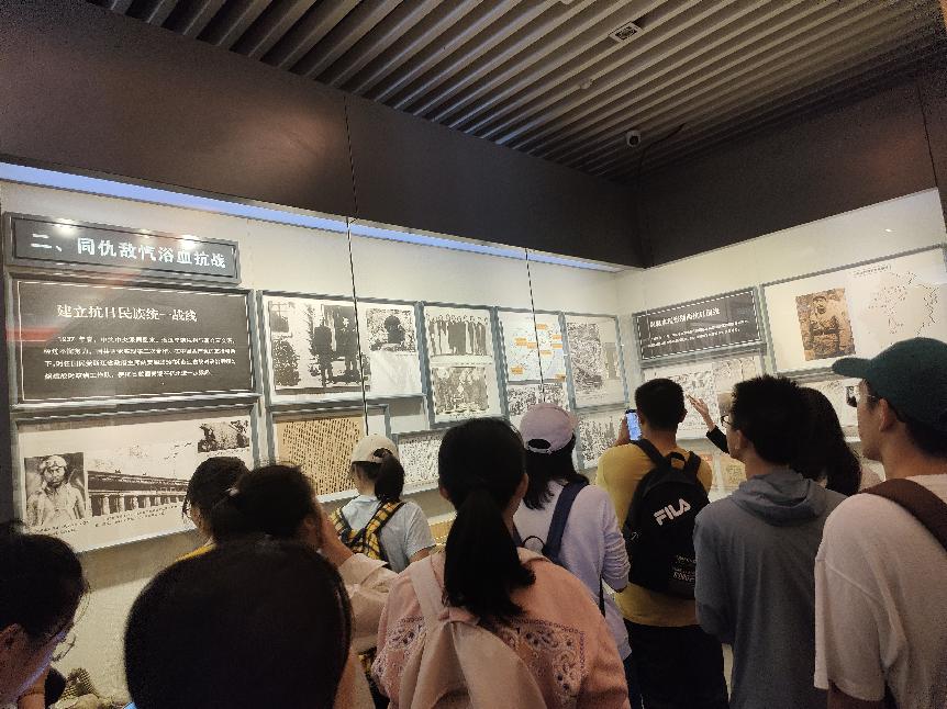 现场参观前,张小晟老师向大家简单介绍了两馆的基本情况与历史背景,让大家心怀期待,开始了自己的红色研学之旅。在老师们的带领下,同学们首先参观了中国共产党杭州历史观。这是一座展示杭州党史、方志和非遗的综合性博物馆,该馆通过共同主题与线索串联起丰富的文物、图片、视频,生动地展示了中国共产党历史的杭州篇章。同学们跟随讲解员的脚步,认真学习了各个展厅的内容,深入了解了杭州在中国革命和建设中的重要地位和贡献,以及杭州的历史文化和城市发展。