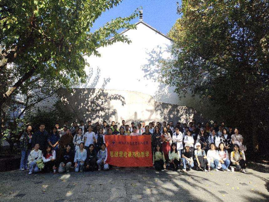 2023年11月2日,《思想道德与法治》课程70名学生在主讲教师张小晟、刘帅老师以及助教王丹琳的带领下前往中国共产党杭州历史馆与五四宪法历史资料陈列馆开展思政课现场教学活动。
