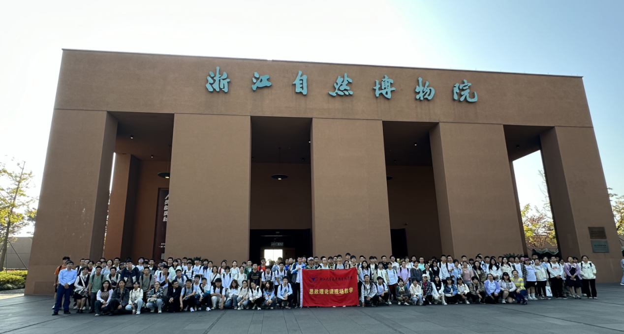 2023年11月5日,浙江大学马克思主义学院姚明明、马建青教师带领近200名“思想道德与法治”课程学生赴浙江省自然博物院开展现场教学活动。